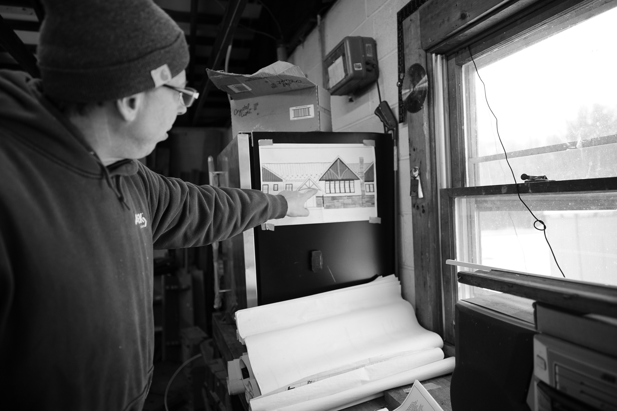 I’m on site, in the middle of it, catching details you only see when you’re there. All of this small data is compiled at the Fieldhouse. I tape it to the wall and talk it through out loud until it makes sense.